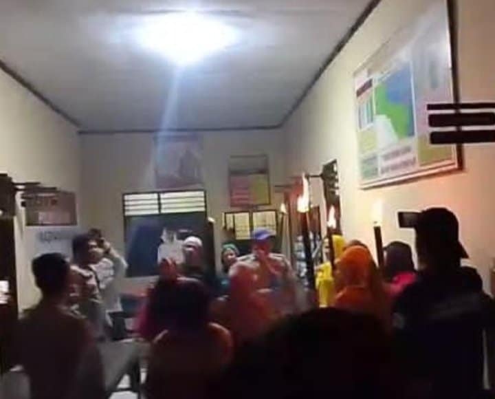 Puluhan masyarakat Torete pun, kemudian mendatangi Mako Polsek Bungku Selatan / Pesisir di Desa Lafeu dengan menggunakan motor dan mobil serta obor sebagai bentuk protes terhadap tindakkan kepolisian yang dinilai sewenang-wenang.